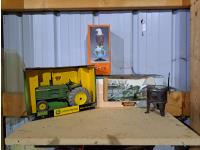 John Deere tractor & thresher, case eagle globe and gauge of an old model a or T