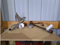 model T wrench, 1937 swan chrome hood ornament, (2) gas caps (1) with key, door and window handle, crank, beehive auto light