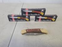 5522 (3) Stainless Steel Folding Pocket Knives (Unused)