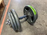 Vintage barbells, barbell collars, and rack