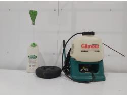 (1) 4.5 gallon backpack sprayer, (1) Gravity flow granule spreader, (1) wheelbarrow wheel and tire size 4.00-6 inch