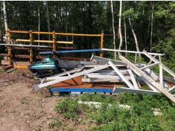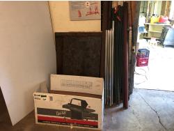 some hardware, (21±) 24 inch x 170 inch, (3) 24 inch x 144 inch<br/>some hardware, (21±) 24 inch x 170 inch, (3) 24 inch x 144 inch<br/>9 Ft X 84 Inch Garage Door complete, some of the door panels are dented<br/>9 Ft X 84 Inch Garage Door complete