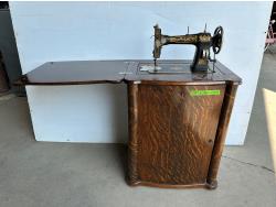 1570 Vintage Singer Sewing Machine, Chair and Storage Stool