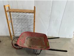 1459 Wine Bottle Rack and Vintage Wheelbarrow