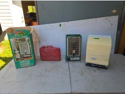 2057 Coleman Heater, Paper Towel Dispenser & Small Fuel Jug