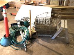 2096 Bag of Grass Seed, Assorted Garden Hose, Aluminum Saw Horse