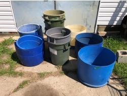 2188 Qty of Cut Off Poly Barrels, Poly Garbage Cans & Poly Tubs