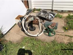 2074 Miter Saw, Kitchen Sink, Assorted Wire and Poly Hose