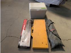Tile saw, paddles, camping cot, jerry can, ammunition canister