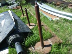 with angle supports, 28 inch h x 2 inch piping, 1/4 inch wall, roll of twisted 1/4 inch cable