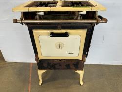 (2) 4 tier shelves, (4) stools, (3) doll cradles, antique wooden trike, painted pail, (5) metal sock forms