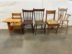 5386 Vintage High Chair, Children's Desk and (3) Wooden Dining Chairs