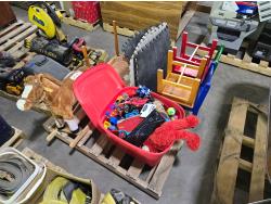 Includes table w/ (4) chairs, tote of miscellaneous toys, rocking horse
