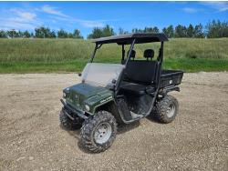 John Deere 4.5 4 cylinder 90 HP, diesel engine, 32 speed partial power shift transmission, cab, left hand reverser, rear differential lock, A/C, radio, ATV steering wheel installed, 540E / 540/1000 PTO, 3 point hitch, 3 point hitch exterior control, 3 rear hydraulic outlets, front weight bracket, joystick, (3) mid hydraulics, loader ready, 320/85R24 front tires, 460/85R30 rear tires