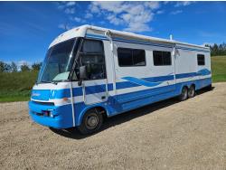 7.3L V8 gas engine, automatic transmission, rear dual wheels, aluminum rims 225/75R/16E tires, 1- electric slide, fridge, freezer, stove, microwave, rear bed room, top over head bed, AC, furnace, TV, stereo, electric awning, Onan QG400 generator with 225 hrs, lots of lower storage cabinets, trailer towing package, back up camera