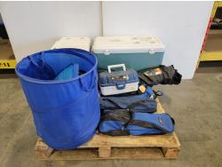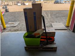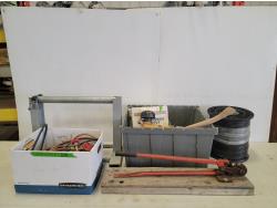 5235 Dr. Frank's Fetal Extractor (Unused), Calf Sled and Qty of Livestock Supplies
