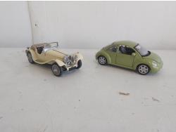 scale unknown on 1938 Jaguar, 1/25 Scale on VW beetle