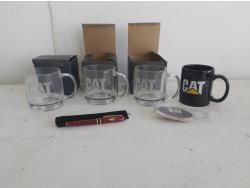 318 Caterpillar (4) Mugs, Ball Point Pen & Belt Buckle