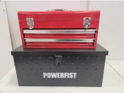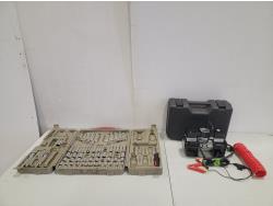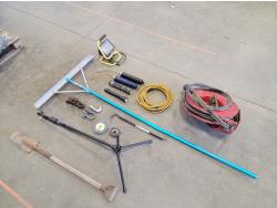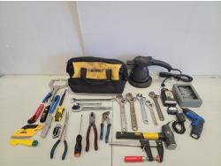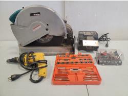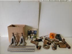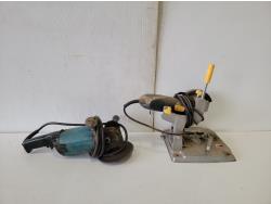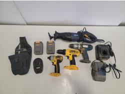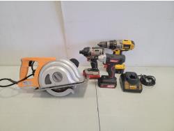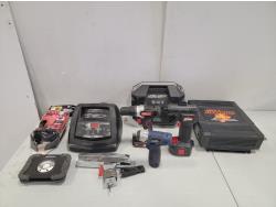 Horse shoes, caster wheels, Mastercraft planer, Mastercraft rotary trim saw, Porter Cable drywall driver, Black & Decker drill, Skil jig saw, Black & Decker jig saw
