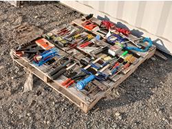 (4) drill bit sets, wrench set, putty knives, (8) vice grips, (2) pliers, tin snips, (2) hose clamp pliers.