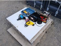 Dewalt circular saw, Riobi plus in drill, Black & Decker plus in drill, Power Fist reciprocating saw, (5) wood clamps, Bostitch nail gun, Bosch rotary hammer