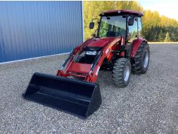 Case IH 360A loader, Q/A, 72 inch bucket, mid mount hydraulic connection, FPT 2.2 L 3 cylinder 54 HP, diesel engine, 43 PTO HP, hydro 3 range transmission, cab, rear differential lock, A/C, radio, heater, 3 point hitch, 2 rear hydraulic outlets, rear wheel weights, 12-16.5 front tires, 17.5L-24 rear tires