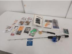 1351 Bass Pro Shops Bag, Pursuit Folding Knife, 6 lb Fishing Line and Signature Series Spinning Reel