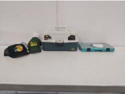 1032 Bass Pro Shops Tackle Box, Boat Bag and (2) Hats
