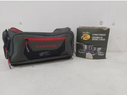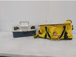 1324 Bass Pro Shops Tackle Bag, (2) Poly Storage Boxes, (2) Fishing Lures, Rod Sock and Hat
