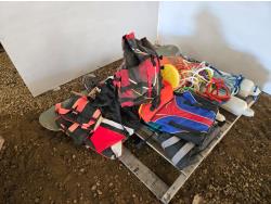 life jackets, snow board, boat buffers, miscellaneous rope, Heat-a-Seat Cushion, (4) throwing horse shoes