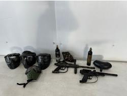 (2) paintball guns, (4) masks, (2) cylinders and (2) hoppers
