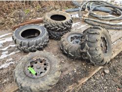 (2) 27X9R14, (1) 27X11R14, (2) 26X12.00-12 on rims, (1) 26X9R12 on rim