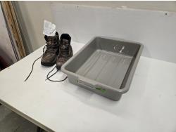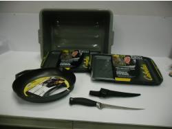 5129 7 Inch Meat Tote/Utility Tub with Serving Trays, Cast Iron Skillet, Fillet Knife