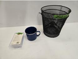 1/2 of a minnow trap, swivel chair base, fire house dummie, replacement knife blades, keychain light, phillips oval head machine screw bolts, washers & nuts