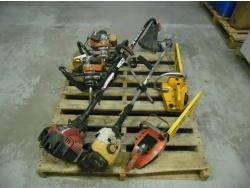 (2) Augers, (2) Chain Saws, (2) Weed Wacker/Trimmers, items missing parts