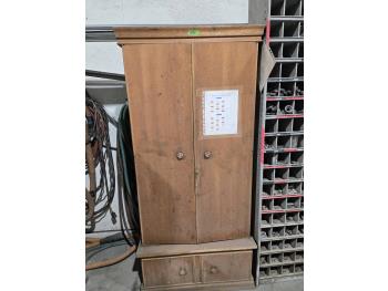 qty of auto body supplies in filing cabinet, Wabasto heater parts, electrical tool brushes, miscellaneous parts and hardware, zip ties filing cabinet measures 18 inch deep X 36 inch wide X 52 inch high, wooden cabinet measures 18 inch deep X 24 inch wide X 48 inch high