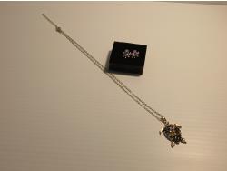 536 Silver Tone Turtle Iridescent Necklace and Earring Set (Unused)