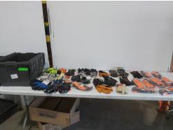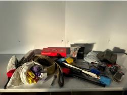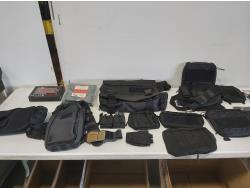(26) pairs of gloves, (9) flashlights, multi-tool, ski goggles, rope, safety vest, belt attachments, (2) modular chest panels, tactical vest