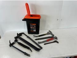 (5) screwdrivers, T-handle screwdriver, (3) adjustable wrenches, 1-1/2 inch chisel, 48 oz hammer, ergonomic pliers, snips, wire strippers, driver bits