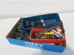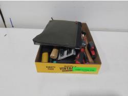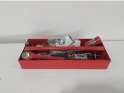 1/2 ft drive ratchet, large qty of drill bits, tap & dies, (2) extractors, antifreeze tester
