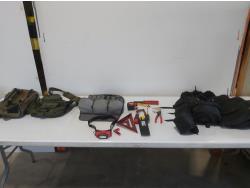 (3) adjustable wrenches, (3) pry tools, (2) BG service pads, Harley Davidson fender cover, Snap-on fender cover