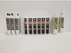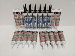 includes (6) 298 mL tubes of advanced silicone, (12) 298 mL tubes of supreme silicone, (2) 298 mL tubes of gutter silicone, (1) 298 mL tube of concrete silicone