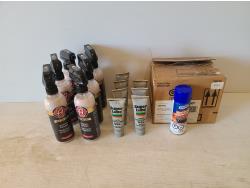 includes (1) 450 mL bottle of Mequiar's ultimate interior detailer, (1) 768 mL bottle of Mequiar's ceramic wax, (10) 473 mL bottles of Adam's interior detailer, (1) 118 mL bottle of Turtle Wax lens clarification compound, (1) 118 mL bottle of Turtle Wax spray lubricant, (5) Mequiar's marine RV oxidation remover, (1) Zmax engine formula, (1) can of rubber care, (3) 473 mL cans of SeaFoam transmission tune, (1) 473 mL bottle of Star Brite liquid rubbing compound, (7) 473 mL bottles of Dura Lube severe fuel system cleaner, (4) 237 mL bottles of Blue Devil rear main sealer, (3) mL bottle of Blue Devil head gasket sealer, (5) 150 mL bottles of Certified gas line antifreeze, (1) Star Brite marine polish, (1) 170 gram can of Gunk battery terminal cleaner, (1) 125 mL Super Lube air tool lubricant, (1) can of Rain-X glass cleaner, (1) 236 mL bottle of Rust Check rust converter, (1) 227 mL bottle of gelled rust remover