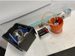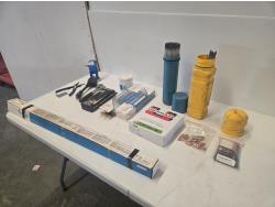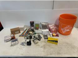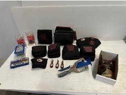 shrinkable tubing, drill bits, (2) American locks, inline pressure regulator, 1/4 inch air hose swivel connectors, Husky tool belt