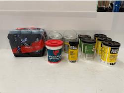 Rislone oil supplement, lucas stop leak, resolve stain & odour remover, rain-x, gojo soap dispenser