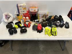 assorted hearing and eye protection, assorted gloves