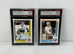 1986-87 Topps #157 Rick Middleton hockey card, Grade 8.5 - (NMM+) Near Mint to Mint Plus<br/>1986-87 Topps #2 Pat Lafontaine hockey card, Grade 8.5 - (NMM+) Near Mint to Mint Plus