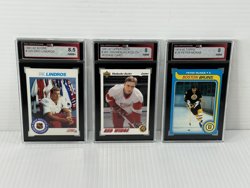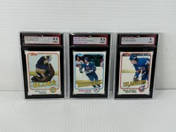 1981-82 Topps #20 Mike Liut hockey card, Grade 8.5 - (NMM+) Near Mint to Mint Plus<br/>1981-82 Topps #39 Peter Stastny rookie card, Grade 8.5 - (NMM+) Near Mint to Mint Plus<br/>1981-82 Topps #4 Mike Bossy, Grade 8 - (NMM) Near Mint to Mint