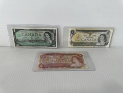 (1) 1967 One Dollar Bill, (1) 1973 One Dollar Bill and (1) 1974 Two Dollar Bill
