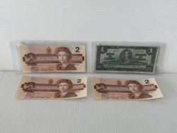 (1) 1937 One Dollar Bill and (3) 1986 Two Dollar Bills